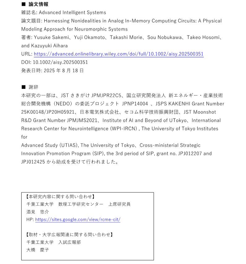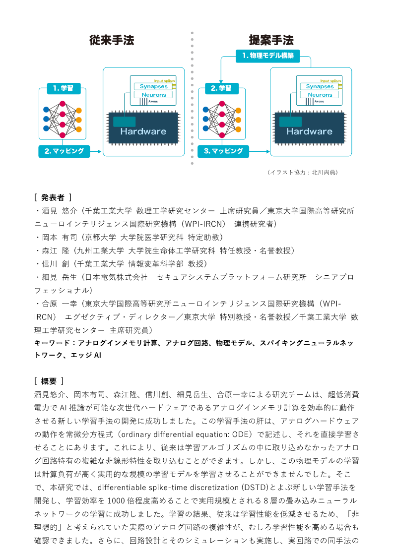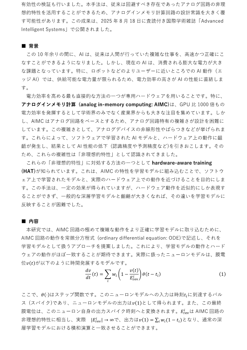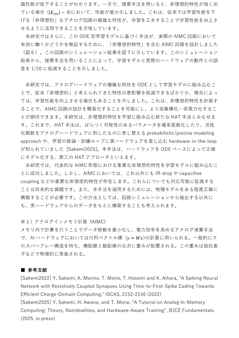 【記者発表】アナログインメモリ計算回路の非理想的特性を取り込む ODE ベース学習手法を開発 ―実用規模の学習に成功